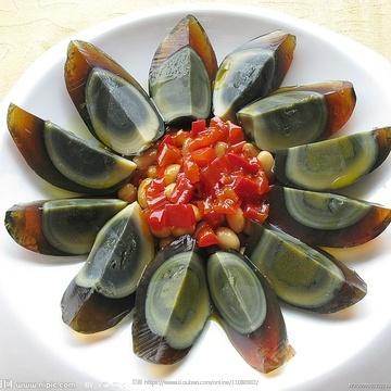 b. 用筷子轻轻夹起皮蛋,用力拉出长长的丝。
