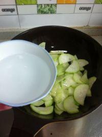 3. 加入蒲瓜片翻炒,炒至断生。